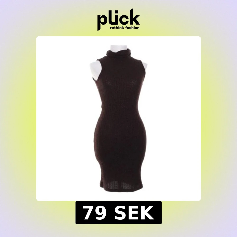 Supersnygg mörkbrub stickad kortklänning från New Look med diskret glitter. Ärmlös modell med hög krage och figurnära passform som framhäver siluetten. Perfekt för dig som vill sticka ut med en enkel men glam look.
