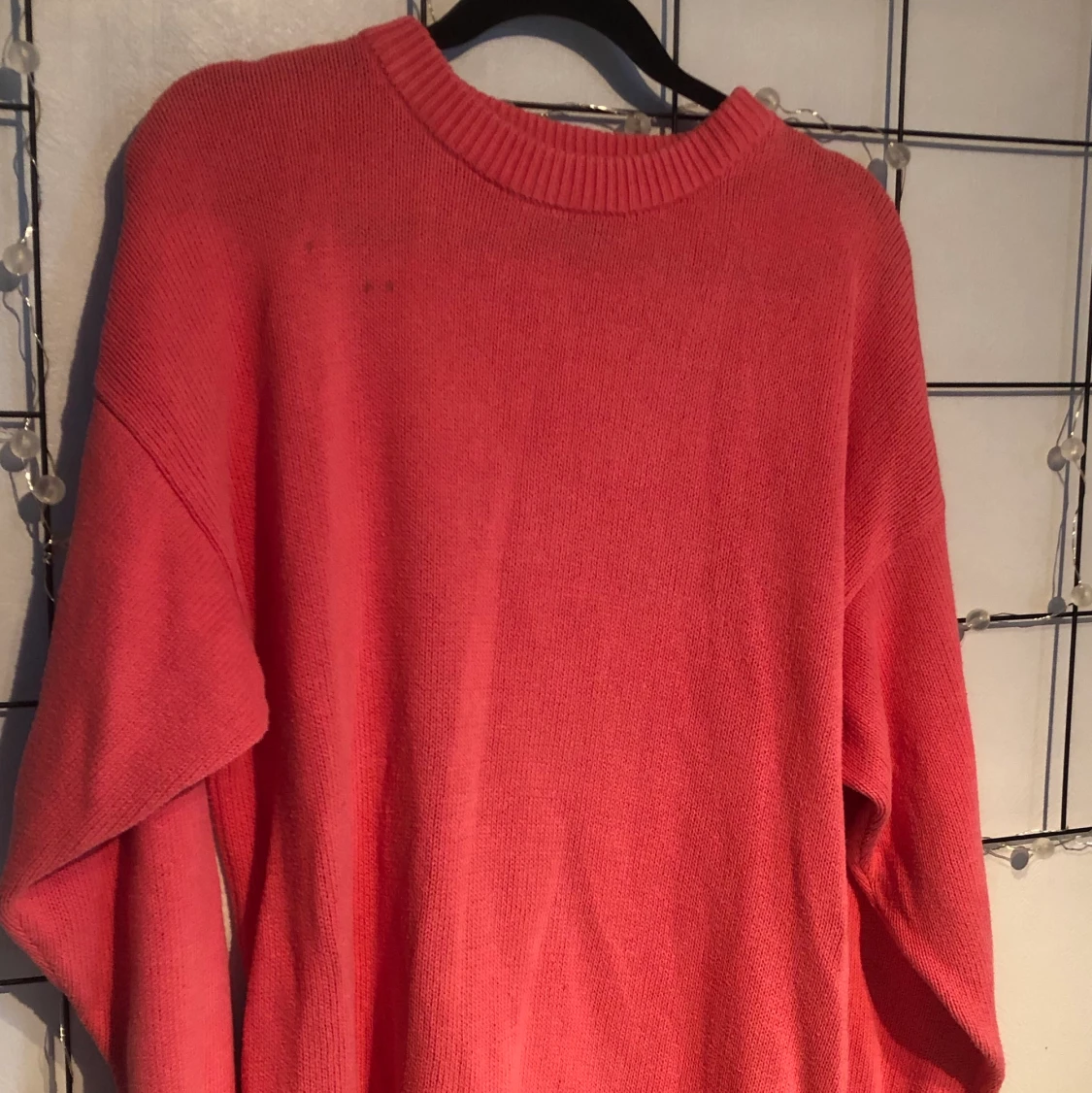 Rosa stickad tröja i storlek L, finns en liten fläck men fixar det innan den skickas, 45 kr + frakt 🥰