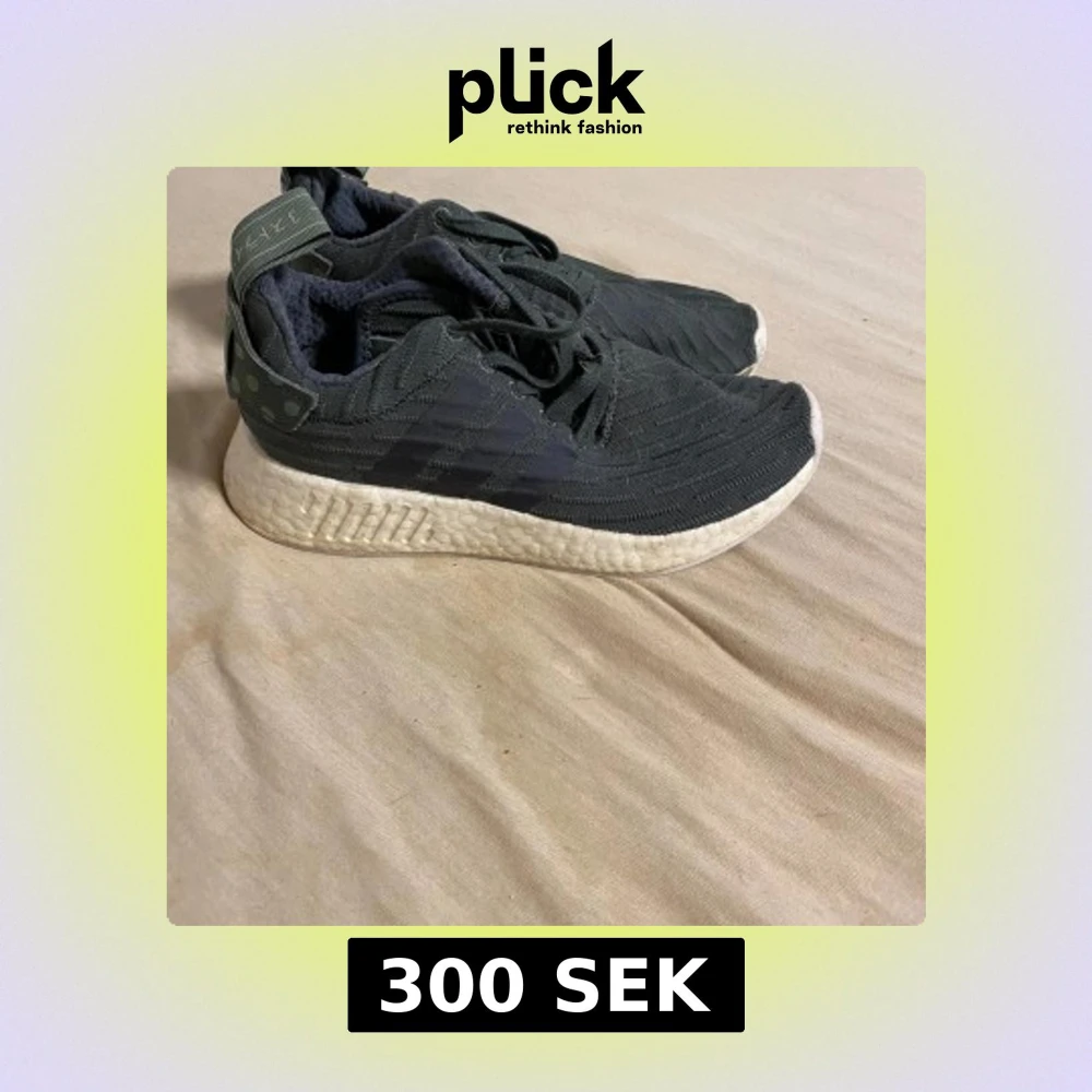 Snygga Adidas NMD sneakers i gröna med stickad ovandel och klassiska tre ränder på sidan. Skorna har vit boost-sula för extra komfort och snörning framtill. Perfekta för dig som gillar streetstyle och vill ha något bekvämt till vardags.