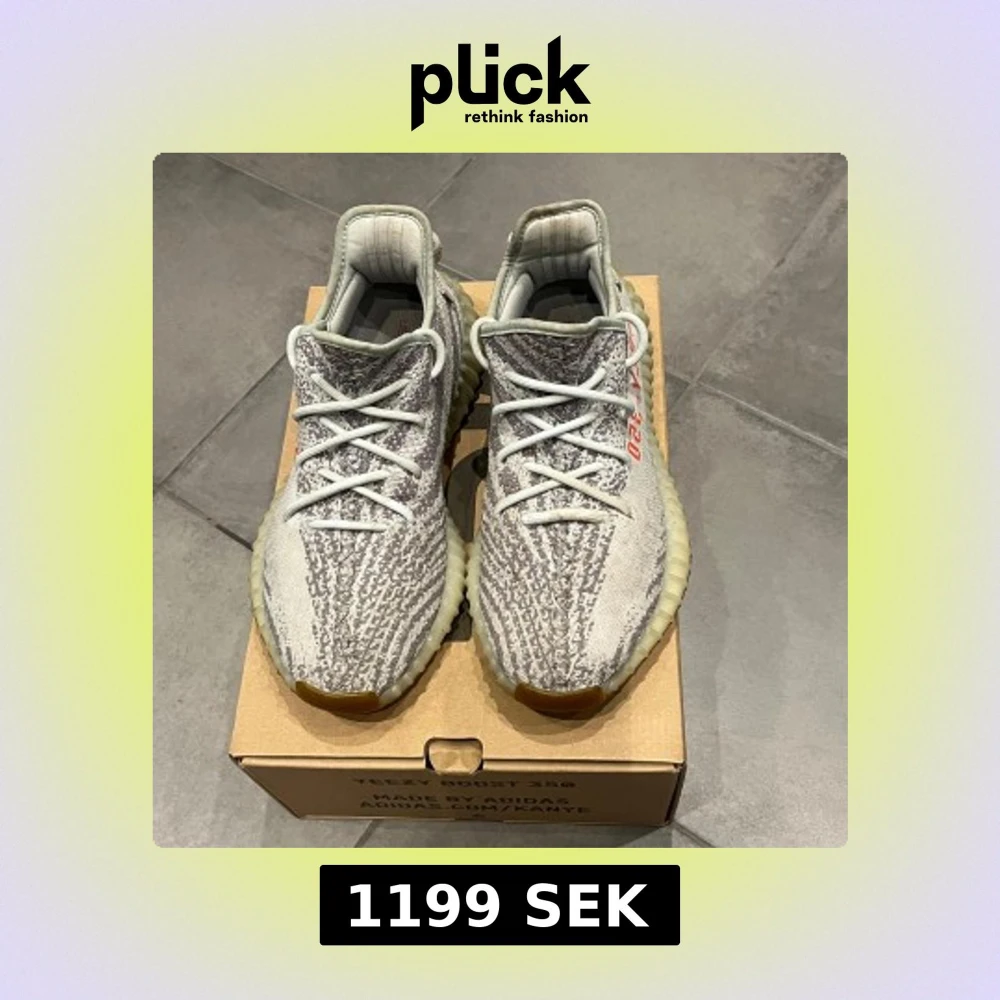 Säljer ett par Adidas Yeezy Boost 350 Blue Tint med ikoniskt randigt mönster i grått och vitt, röda SPLY-350-detaljer på sidan och ribbad sula. Skorna har snörning och är tillverkade i stickad syntet för en skön och flexibel passform. Hör av om du har några frågor eller funderingar.
