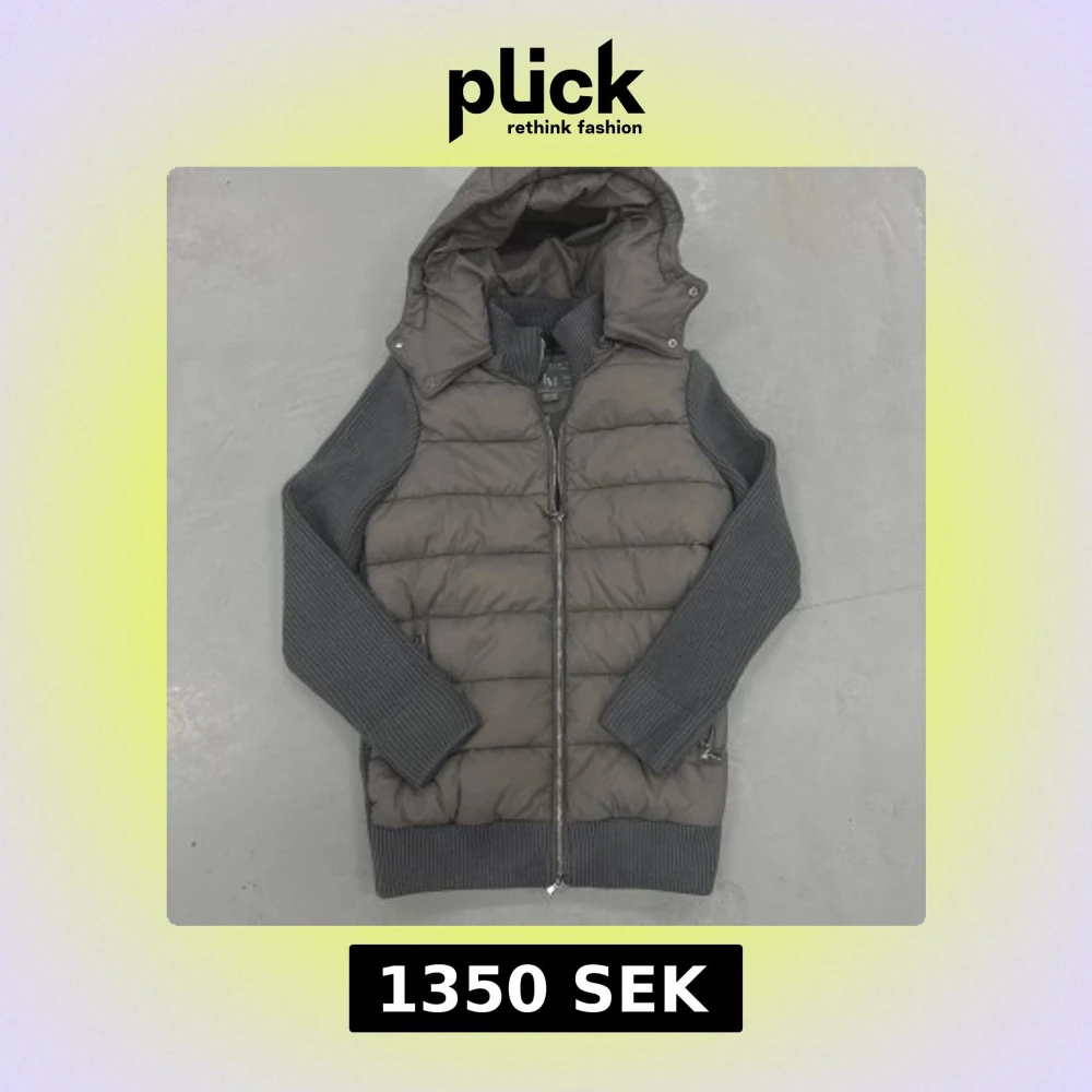 Snygg grå pufferjacka från Leon Marcel med stickade ärmar och rygg, quiltad framsida och huva. Jackan har dragkedja framtill och ribbade muddar. Perfekt för dig som gillar en modern och clean look med extra komfort.
