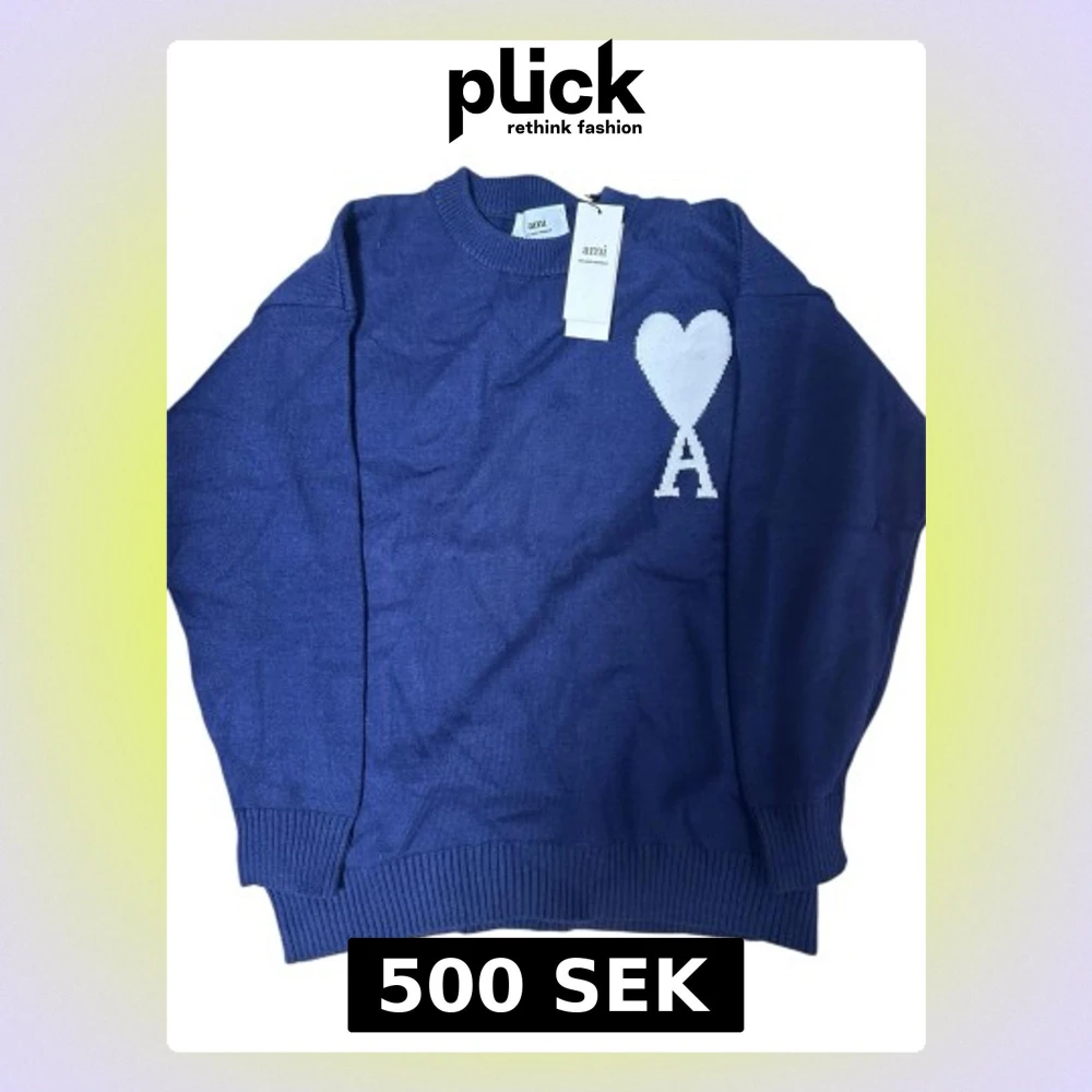 Snygg blå stickad tröja från Ami med rund hals och ribbade muddar. På bröstet finns ett vitt hjärta och bokstaven A som cool detalj. Perfekt för dig som gillar stilrena plagg med en twist. Passar dig som vill ha en normal passform.