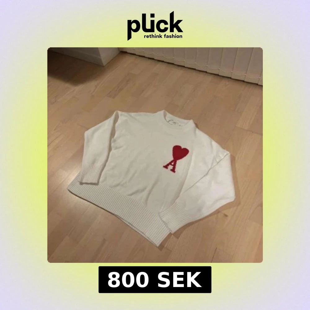 Vit stickad tröja från Ami Paris med röd hjärtapplikation och bokstaven A på bröstet. Tröjan har ribbade muddar vid ärmslut och nederkant, samt långärmad och rund hals. Perfekt för dig som gillar stilrena detaljer och fransk design.