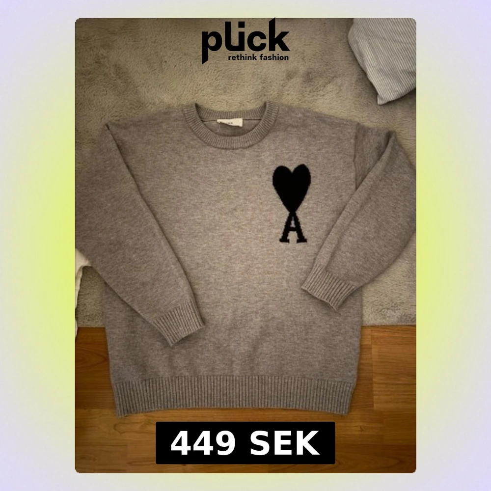 Säljer en grå stickad tröja från Ami Paris