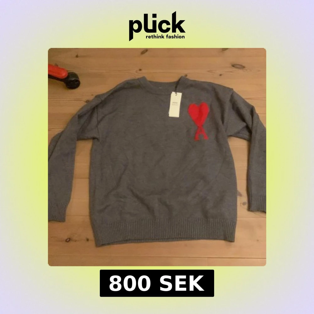 Snygg grå stickad tröja från Ami Alexandre Mattiussi med ett stort rött hjärta och bokstaven A broderat på bröstet. Tröjan har rund halsringning, ribbade muddar och lång ärm. Perfekt för dig som gillar stilrena detaljer och vill sticka ut lite extra.