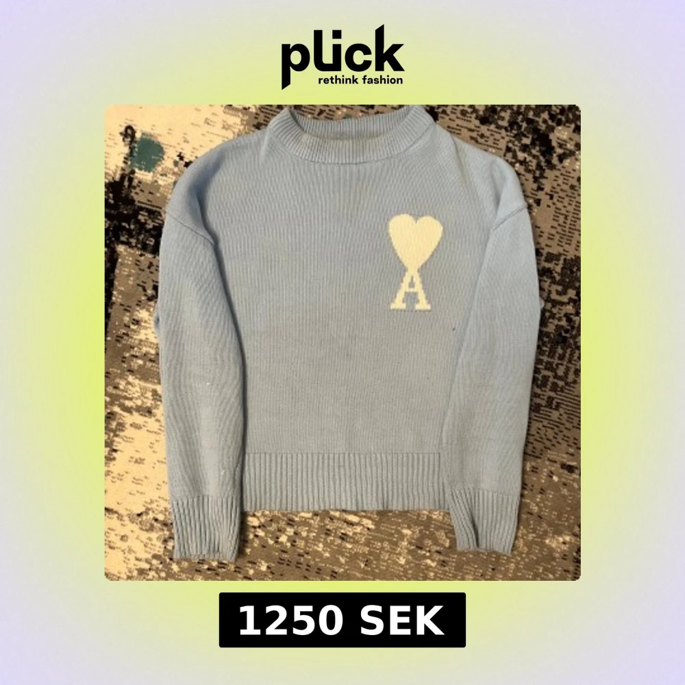 Säljer en snygg ljusblå stickad tröja från Ami med en fin unique design. Tröjan är perfekt för kyligare dagar och passar med olika stiler skriv till mig för mer info
