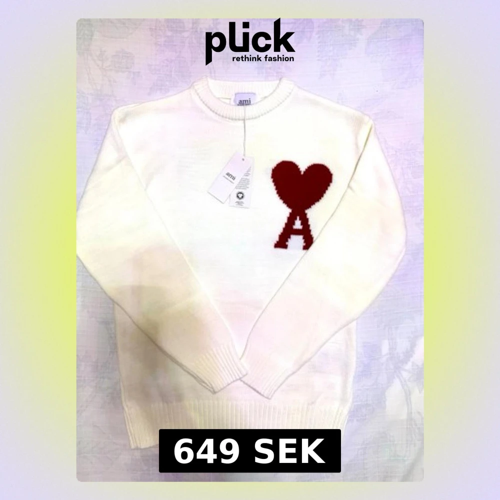 Hej! Säljer en vit stickad tröja från Ami som har den ikonsika röda hjärtat och bokstaven A på bröstet. Tröjan har rund hals, ribbade muddar och lång ärm. Perfekt för dig som gillar stilrena detaljer och vill ha något som sticker ut lite extra. Passar perfekt till vardagen men även till festliga tillfällen 😊❄️