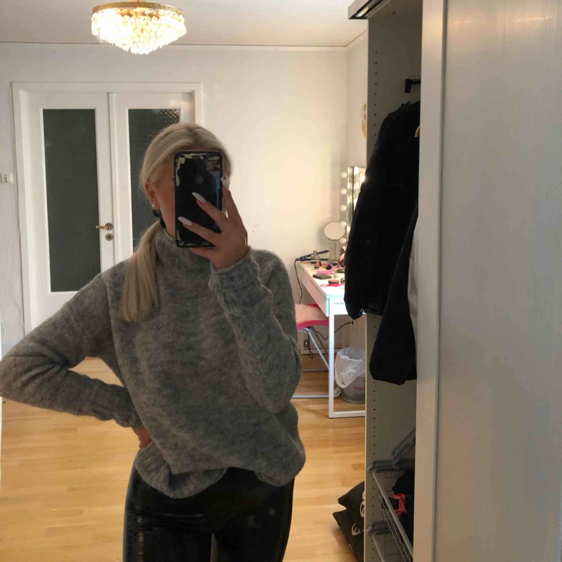 En grå stickad tröja med polo krage, använt få gånger så den är i bra skick!