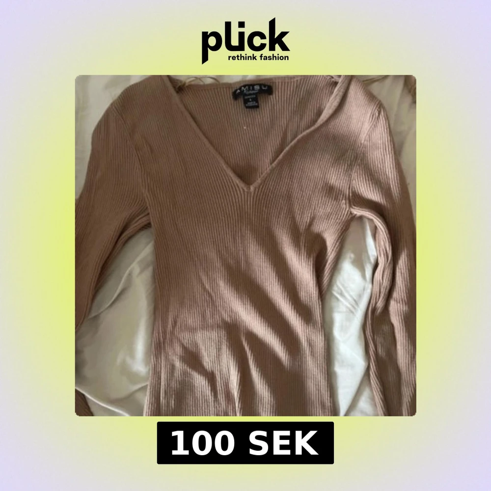 Säljer en beige ribbad tröja från Amisu med v-ringning och lång ärm. Tröjan är stickad och har en slim passform som sitter snyggt på kroppen. Perfekt för lager-på-lager och enkel att matcha med jeans eller kjol.