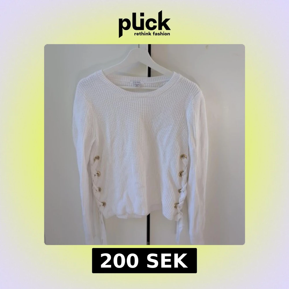 Vit stickad tröja från Amisu med snygga snörningsdetaljer i sidorna och guldiga öljetter. Tröjan har rund halsringning och långa ärmar, perfekt för lager-på-lager under hösten eller vintern.