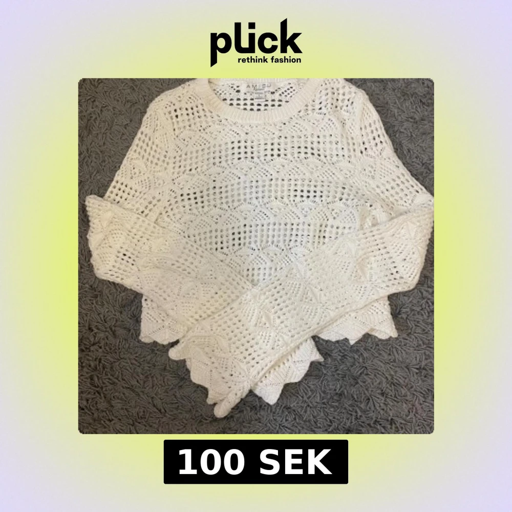 Superfin vit stickad tröja från Amisu med croppad passform och långärmade ärmar. Tröjan har ett snyggt hålmönster och vågig kant nertill och vid ärmslut. Perfekt för vår och sommar när du vill ha en luftig och trendig look.