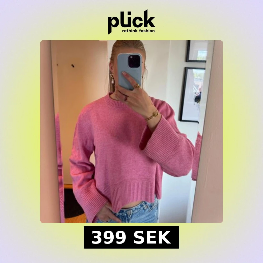 Superfin rosa stickad tröja med breda ribbade muddar och vida ärmar från arket. Väldigt fin sommar färg🩷