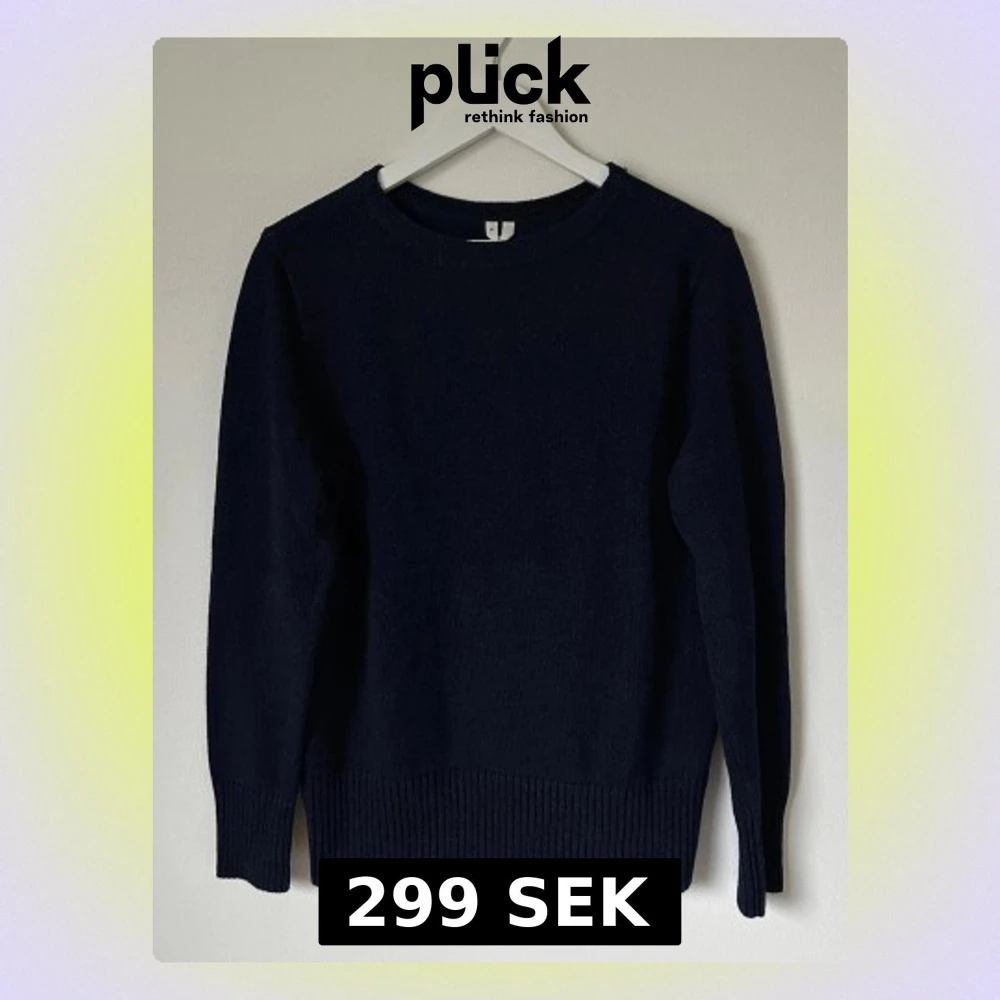 Mörkblå stickad tröja från ARKET - Säljer en mörkblå stickad tröja från ARKET i storlek S. Tröjan har en ribbad struktur, rund hals och långa ärmar. Perfekt för lager-på-lager under kyliga dagar. Materialet är mjukt och ger en skön känsla mot huden. 6Q7