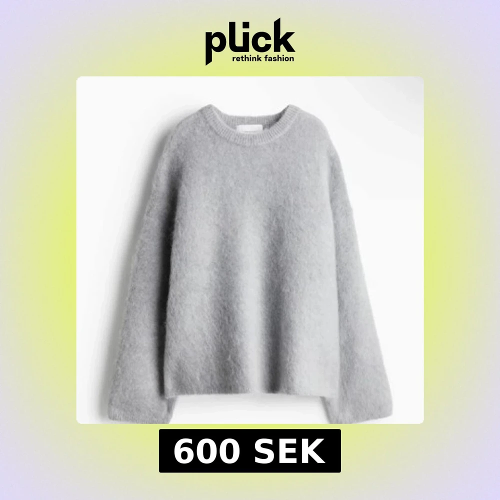 Mjuk och fluffig ljusgrå stickad tröja från H&M med rund hals och långärmad passform. Tröjan har en loose fit och är perfekt att bära över en skjorta. Materialet är en skön blandning med ull som ger en mysig känsla.