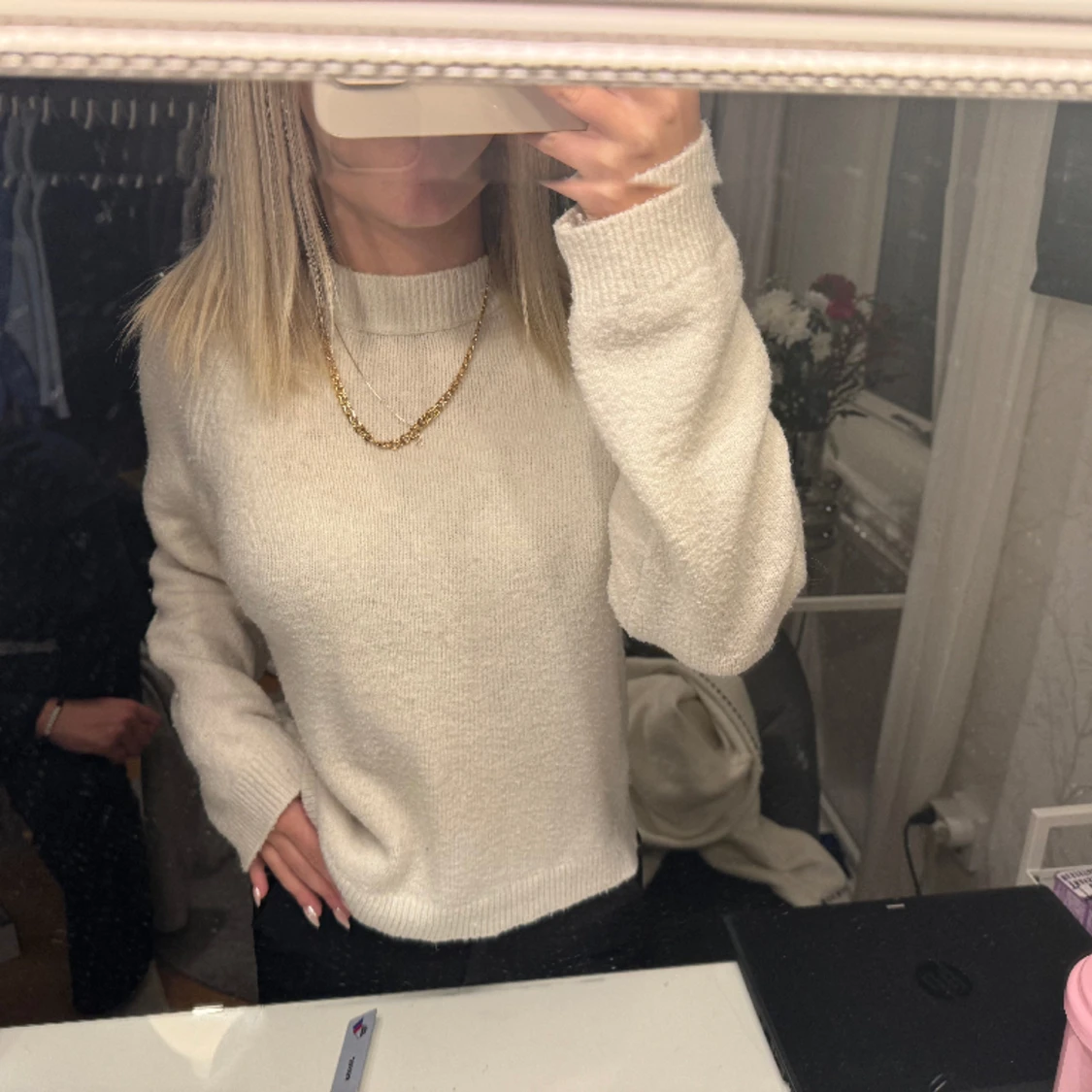 Vit stickad tröja köpt ifrån Asos för något år sedan, använd men väldigt fint.❤️