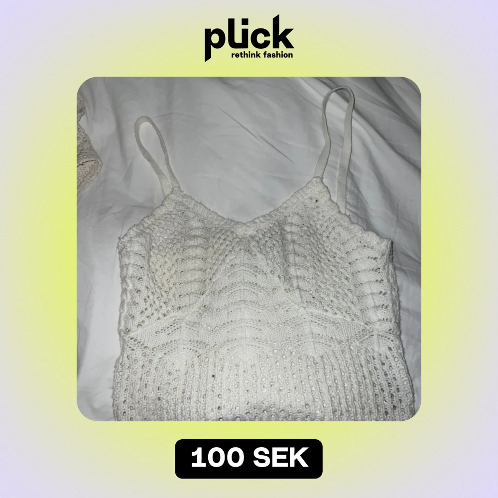 Säljer en söt vit stickad linnetopp från ASOS med smala axelband.
