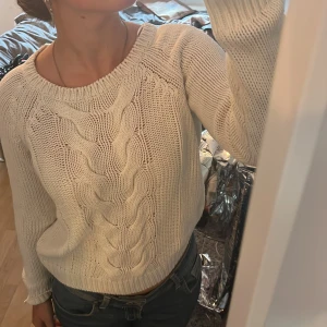 Säljer min vita sköna stickade tröja från Cubus i storlek som 158-164 men passar även xs-s Pris : 100 + frakt