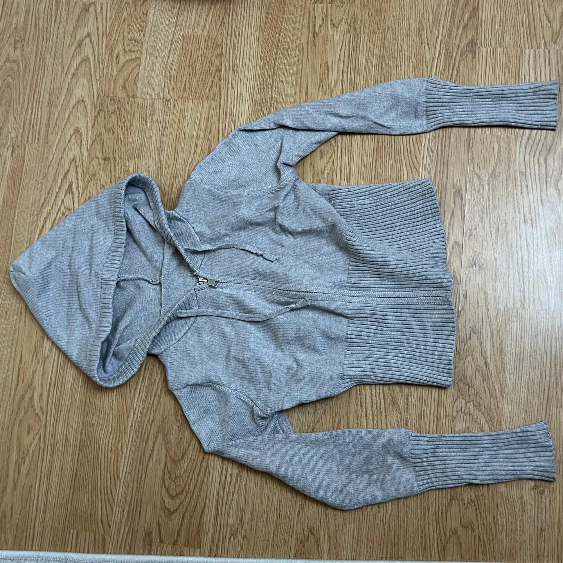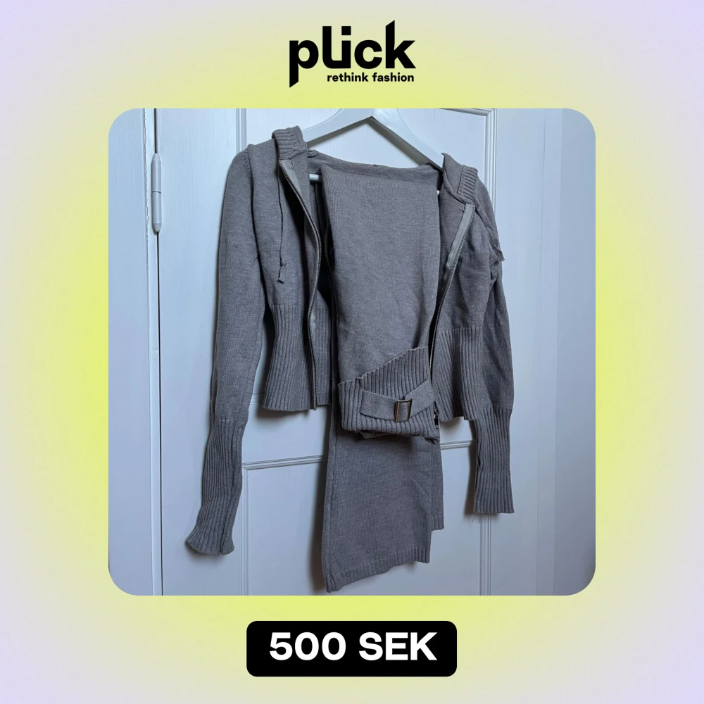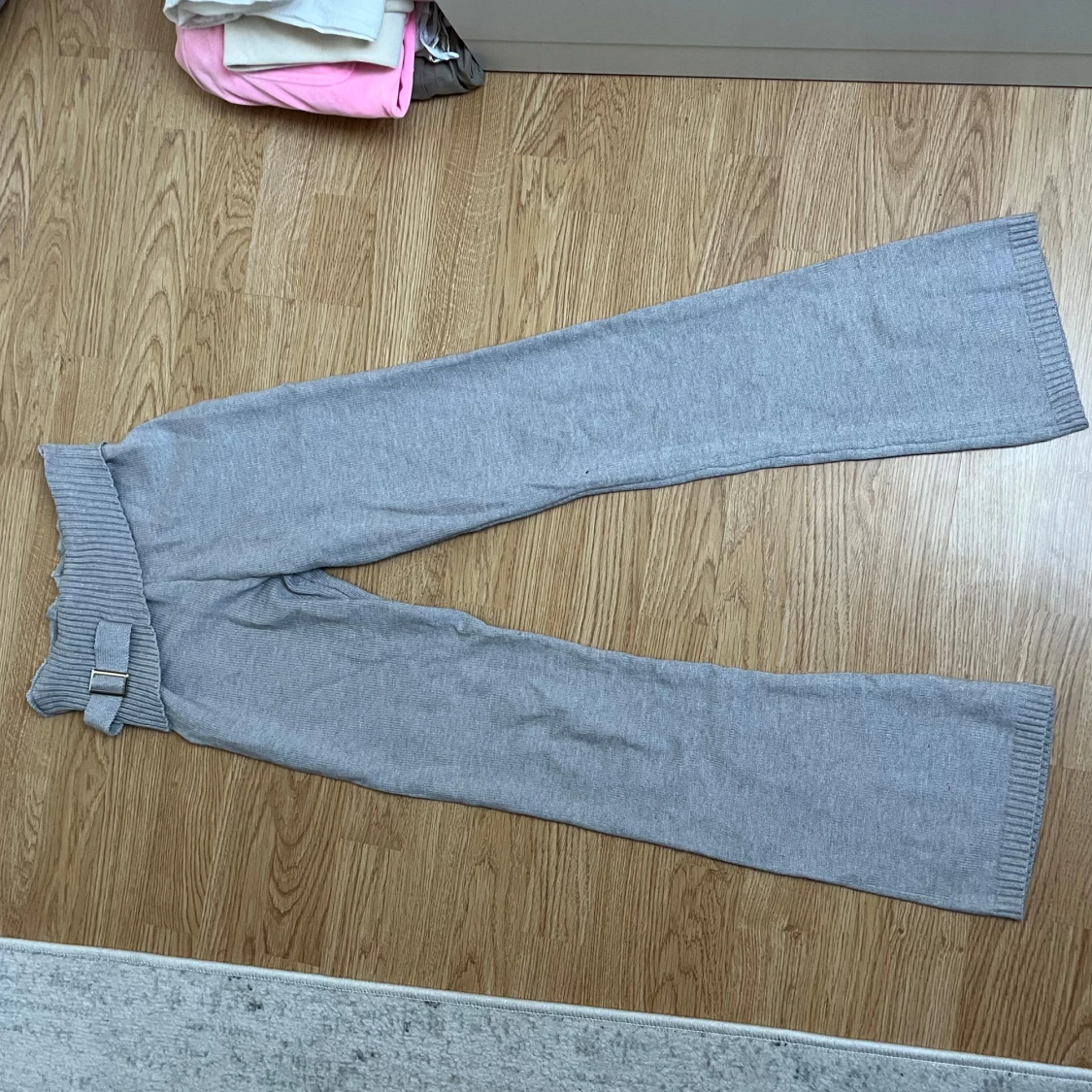 Säljer ett supermysigt grått set med stickad hoodie och matchande byxor. Hoodien har dragkedja och långa ärmar, perfekt för kyliga dagar. Byxorna är bekväma med ribbade detaljer och ett bälte i midjan. Perfekt för en avslappnad stil hemma eller ute.