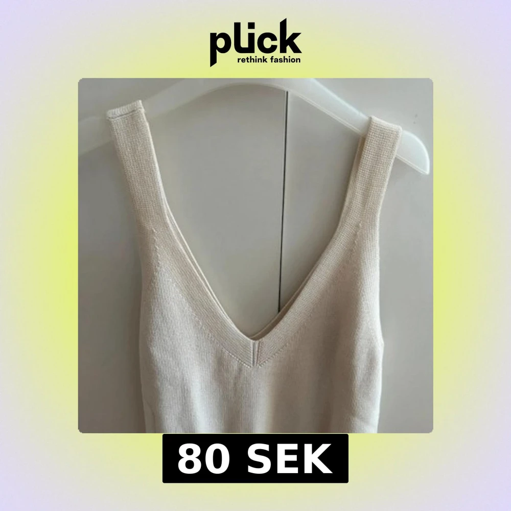 Superfin beige stickad linnetopp med breda axelband och djup v-ringning både fram och bak. Toppen är croppad och har en enkel, stilren design som passar perfekt till jeans eller kjol. Mjuk och skön att bära under varma dagar