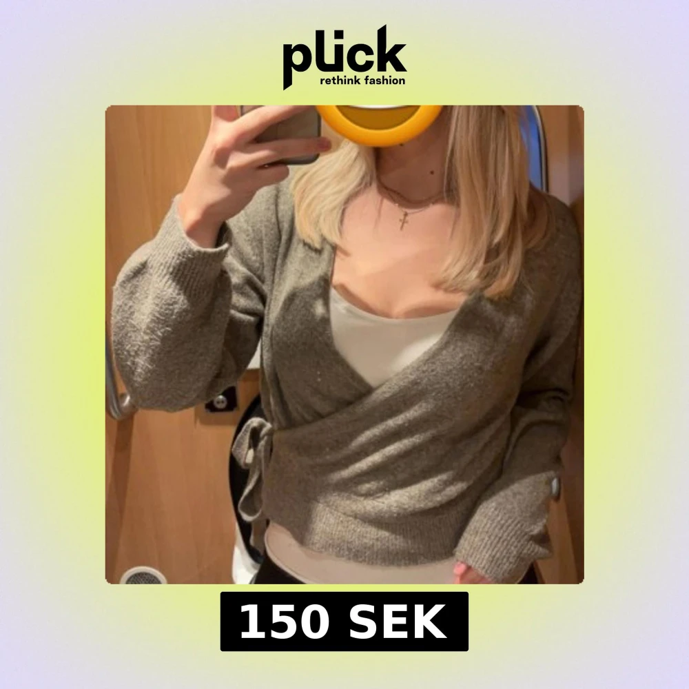 Mysig beige omlottkofta från About You med knytband i midjan. Koftan har lång ärm och är stickad i ett mjukt material, lite nopprig men inget jag tycker stör! Passar S-L
