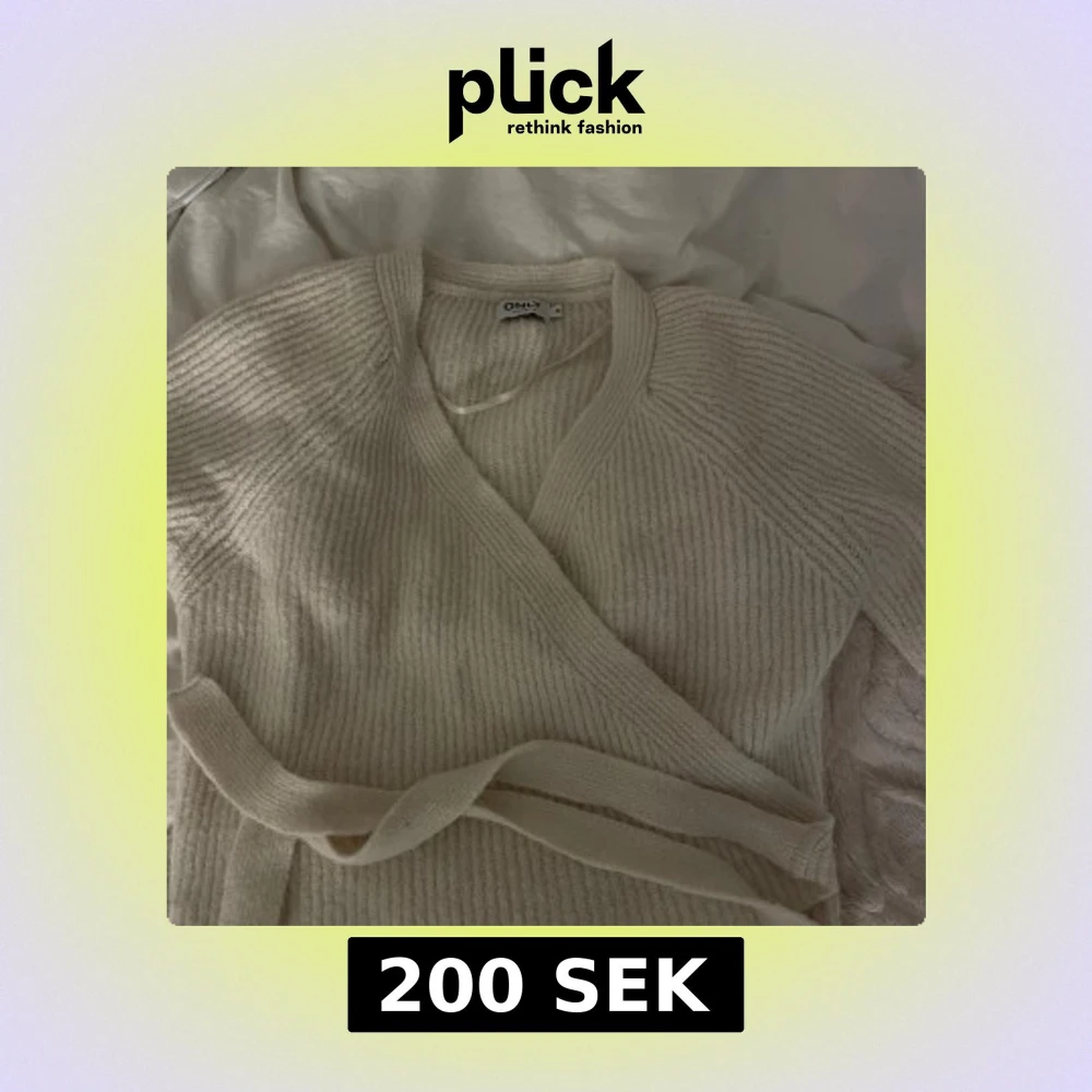 Mysig beige stickad omlottkofta från ONLY med knytskärp i midjan. Tröjan har lång ärm och ribbad struktur