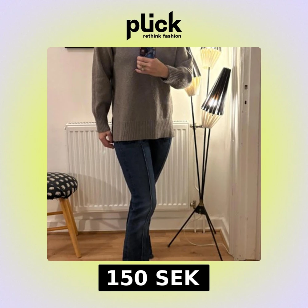 Mysig beige polotröja från H&M i stickad bomullsmix. Tröjan har en hög, ribbad polokrage och långa ärmar med breda muddar. Passformen är normal och modellen är rak, vilket gör den enkel att styla med jeans eller kjol.