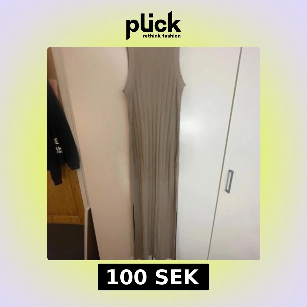 Långklänning i beige från H&M, ribbstickad och ärmlös med slits på sidan. Klänningen har en tight passform och är tillverkad i mjuk stickad bomullsmix. Perfekt för dig som gillar stilrena och bekväma plagg.
