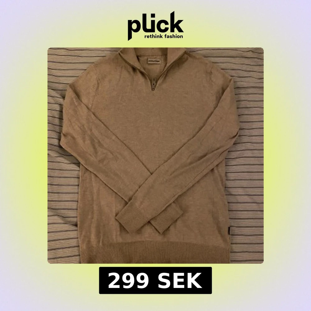 Snygg beige stickad tröja från Jack & Jones med half zip och hög krage. Tröjan har långärmade ribbade muddar och ribbad nederkant. Perfekt för dig som gillar stilren och enkel design med en chill vibe.