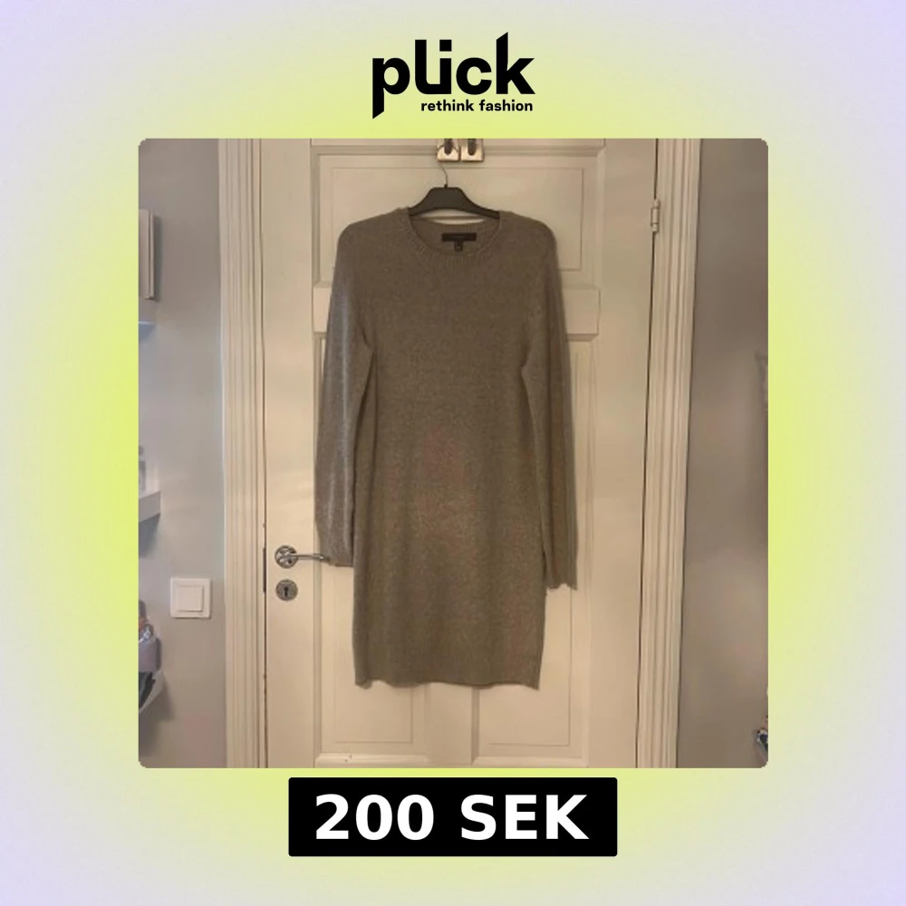Mysig beige stickad klänning med långärmad design. Perfekt för kyligare dagar med sin mjuka och bekväma passform. Enkel och stilren, passar till många tillfällen.