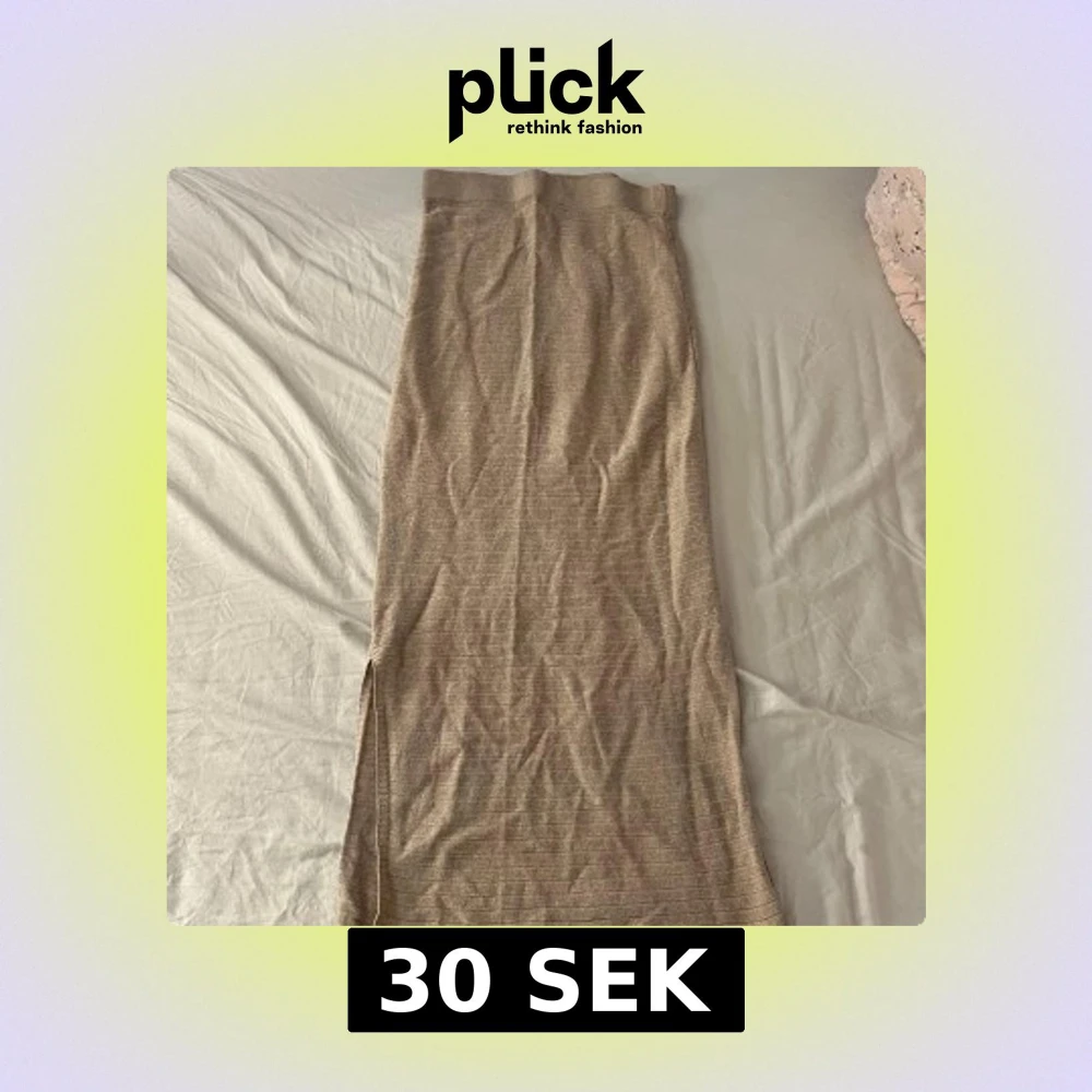 Säljer en beige stickad långkjol från KappAhl i storlek S. Kjolen har en rak passform med diskreta horisontella ränder och en slits på sidan för extra rörelsefrihet. Perfekt för dig som gillar en enkel och stilren look.