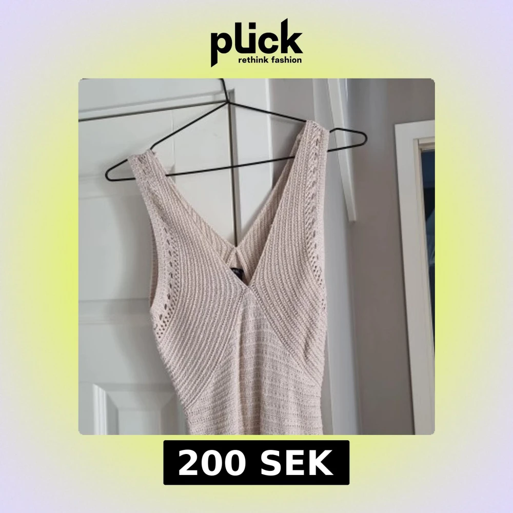 Supersnygg beige stickad långklänning från Lindex i storlek XS. Klänningen är ärmlös med v-ringning och har ett virkat mönster samt fina detaljer nertill. Perfekt för sommarens varma dagar och ger en chill och trendig vibe. Oanvänd.