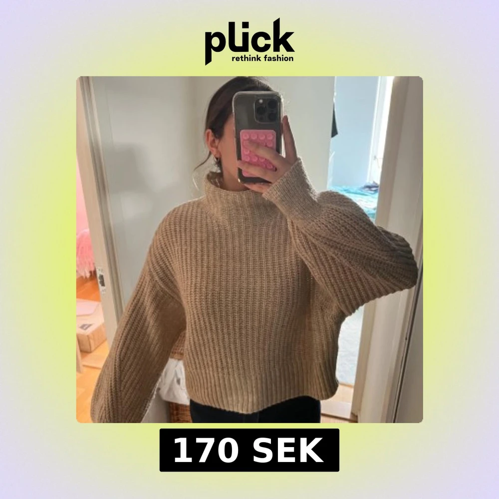 Säljer en beige stickad polotröja med breda ärmar och hög krage. I perfekt skick storlek M från H&M 🤎
