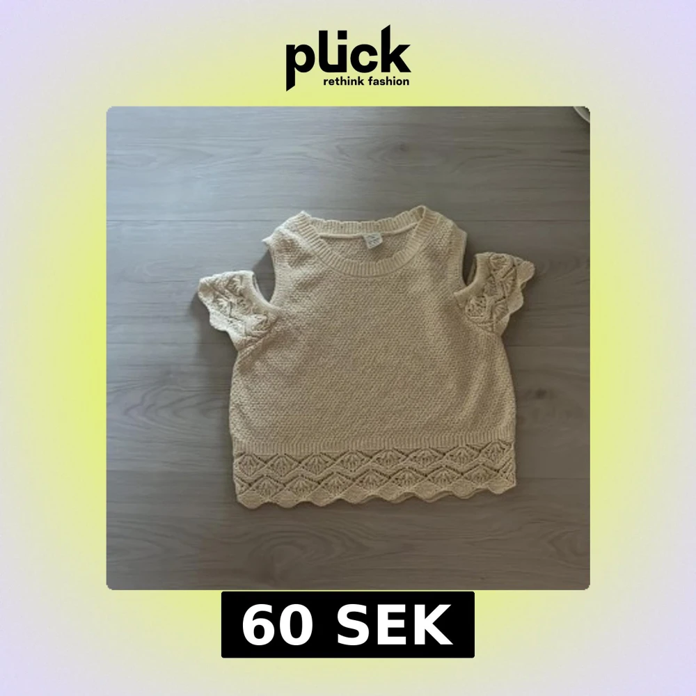 Superfin beige stickad topp från Lindex med korta ärmar och snygga virkade detaljer på både ärmar och nederkant. Toppen har en rund hals och ett mönstrat avslut som ger extra stilpoäng. Perfekt för dig som gillar en chill och trendig look. Som ny