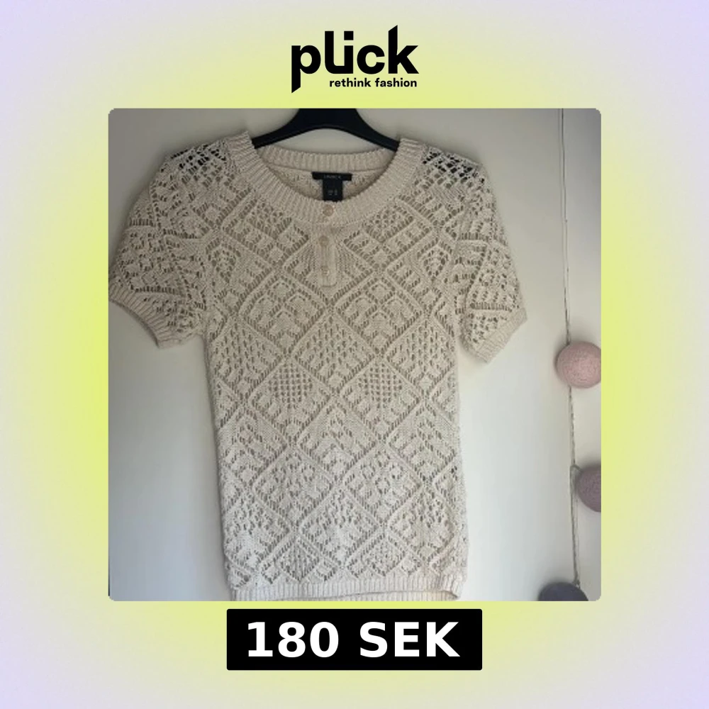 Säljer en beige stickad topp från Lindex med korta ärmar och snyggt hålmönster. Tröjan har rund halsringning, ribbade kanter och två dekorativa knappar framtill. Perfekt för dig som gillar en chill och trendig stil.
