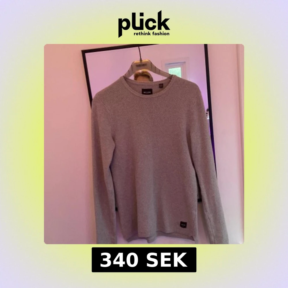 Säljer en beige stickad tröja från Only & Sons i storlek XS men sitter som S. Tröjan har rund halsringning, lång ärm och en diskret struktur i materialet.