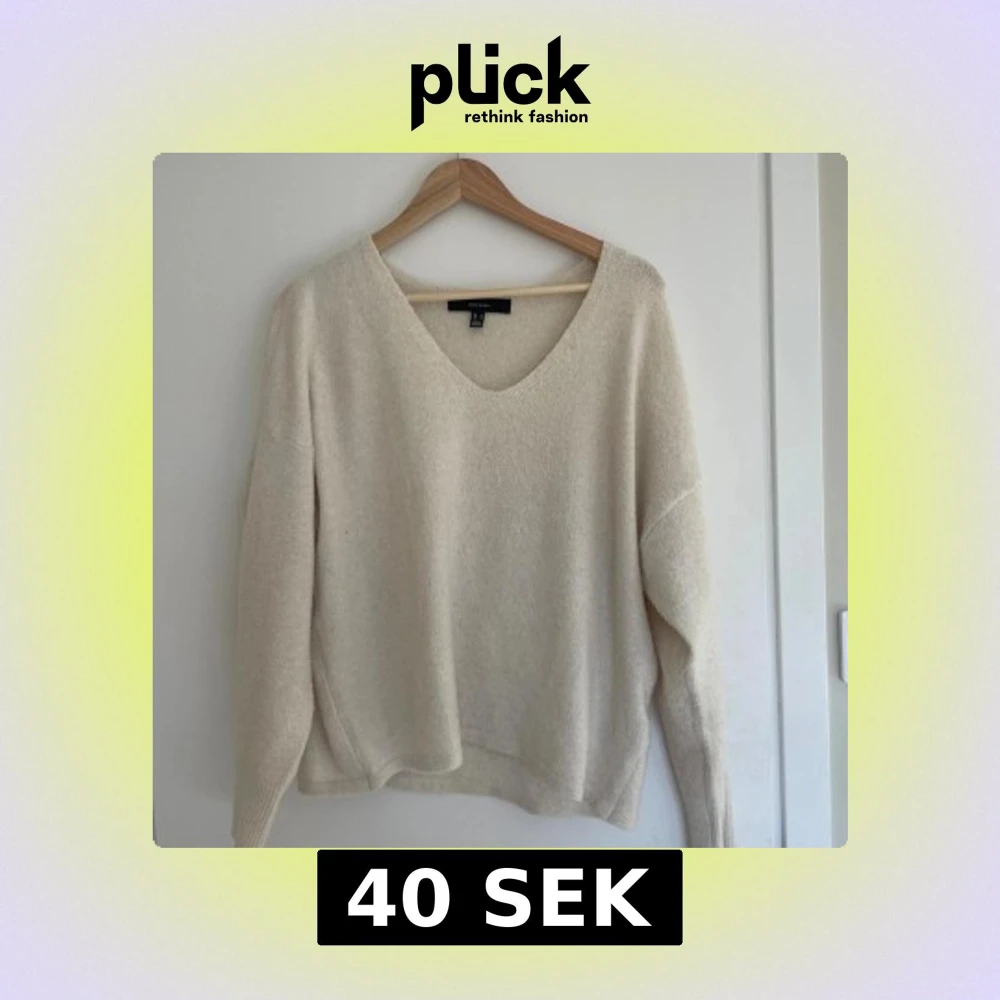Mysig beige stickad tröja från H&M med v-ringad hals och lång ärm. Perfekt för lager-på-lager och chill dagar. Enkel och stilren design som passar till allt.