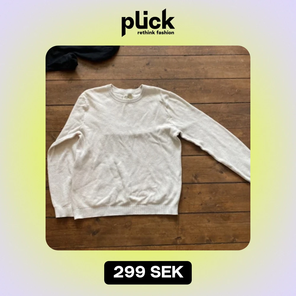 En vit/ ljus beige stickad tröja från East West med rund halsringning och ribbstickad kropp. I fint skick!