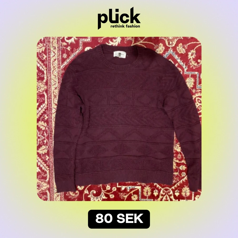 Vinröd stickad tröja i storlek M/L köpt på Beyond Retro för något år sen! Har bara använt den 1-2 gånger själv och den är i bra skick 🤝