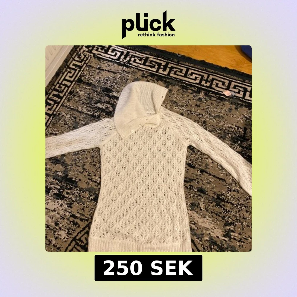 Säljer en vit stickad tröja från Bik Bok i storlek L. Tröjan har ett snyggt hålmönster, lång ärm och en unik huva med knappar. Perfekt för dig som gillar mysiga och stilrena plagg med lite extra detaljer.