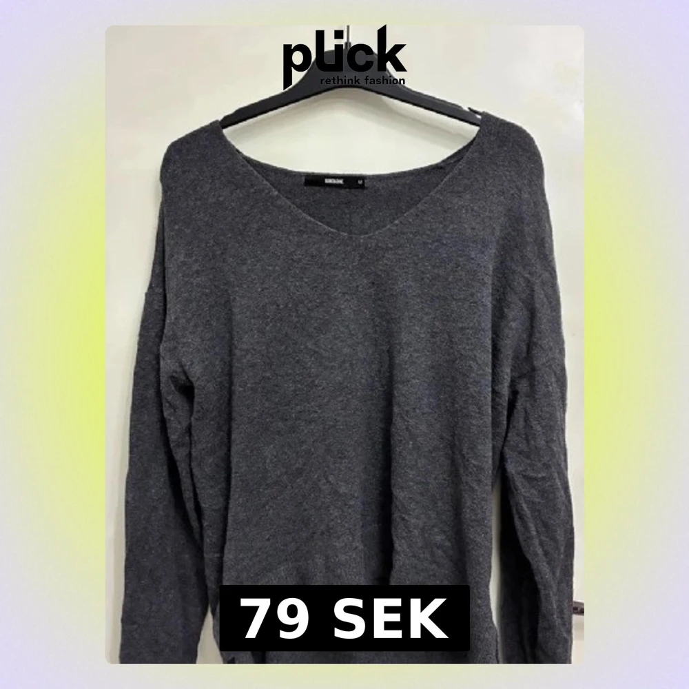 Mysig mörkgrå stickad tröja från BikBok i storlek M. Tröjan har en v-ringad hals och långa ärmar, med en lite loose passform och ribbad nederkant. Perfekt för dig som gillar enkel och chill stil.