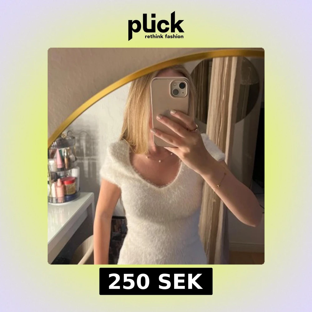 Supermjuk och fluffig vit stickad topp med korta ärmar och v-ringad hals. Sitter figurnära och har en riktigt cozy känsla. Perfekt att styla med jeans eller kjol för en trendig look. INTE JAG PÅ BILDERNA!