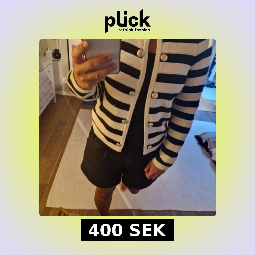Snygg stickad stilfull kofta rån Bik Bok i svart och med breda horisontella ränder. Koftan har rund halsringning och dekorativa guldiga knappar framtill. Perfekt för att ge din outfit en preppy touch.
