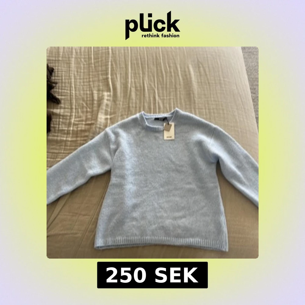 Säljer en ljusblå stickad tröja från Bik Bok i återvunnen polyesterblandning. Tröjan har en klassisk rund hals och långa ärmar, perfekt för kyligare dagar. Enkel och stilren design som passar till det mesta. 🌟Aldrig använd och köpt någonstans i februari, säljer pga för liten. Pris kan absolut deiksuteras och kom privat för fler bilder!