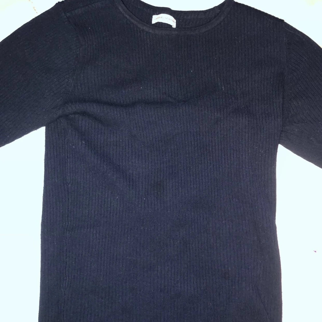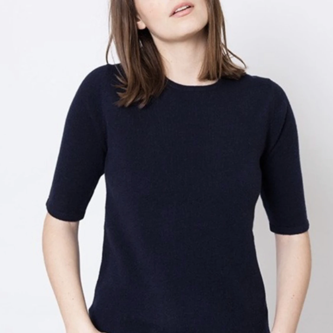 En jätte fin ribstickad kortärmad tröja i marin blå sitter jätte fint på kroppen