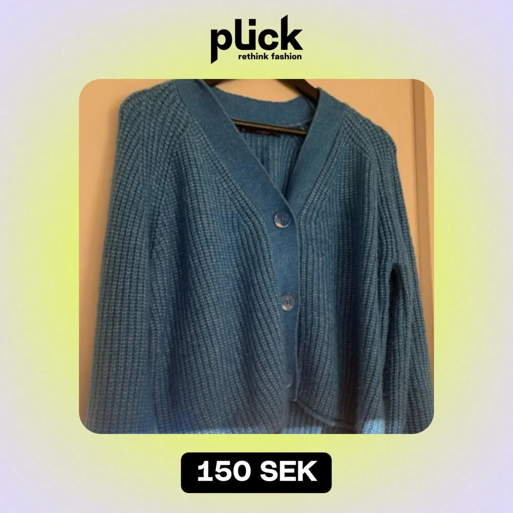 En fin blå stickad kofta som använts 1gång. Säljer den för att den inte kommer till användning. Strl XS.