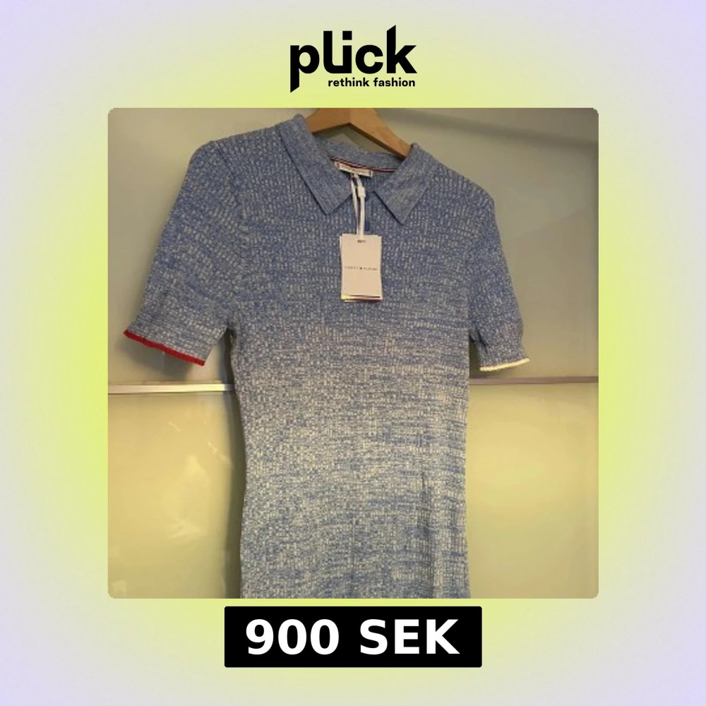 Snygg blå klänning från Tommy Hilfiger med korta ärmar och krage. Klänningen har en fin textur och detaljer i rött och vitt vid ärmsluten. Perfekt för en stilren look! Klänningen är oanvänd och med alla etiketter på.