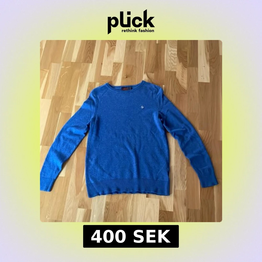 Säljer en blå tröja från Morris i 100% merinoull. Tröjan har rund halsringning, ribbade muddar och en broderad logga framtill. Perfekt för dig som gillar klassisk och stilren look med en modern touch. På tröjan står det att den är i storleken L, men den passar storleken XS.