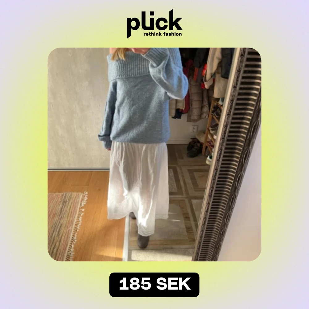 Sparsamt använd blå stickad foldover tröja, bra skick ❤️