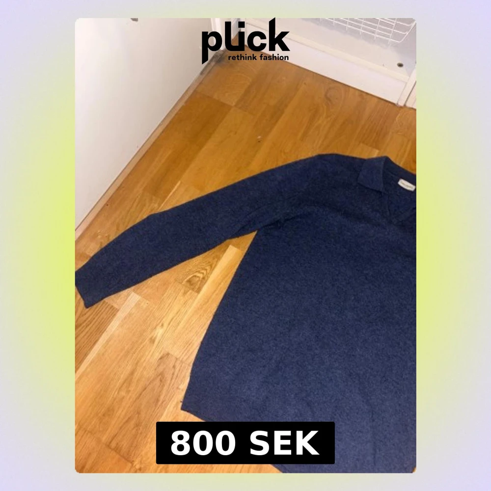 Mörkblå cashmere polotröja från John Henric i storlek M. Tröjan har klassisk krage med v-ringning och långa ärmar. Mjuk och skön kvalitet som passar perfekt när det är lite kyligare ute. Enkel och stilren design utan mönster.