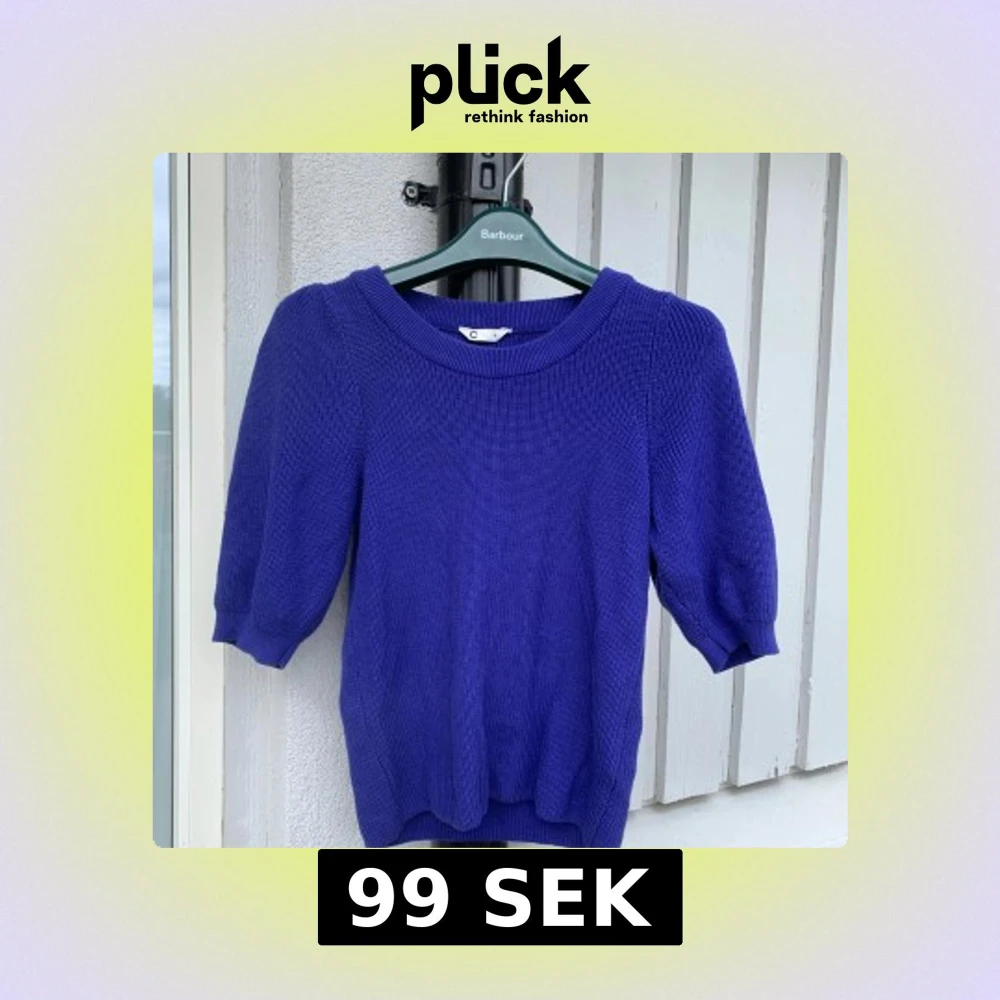 Säljer en snygg blå stickad tröja från Cubus i storlek S. Tröjan har rund halsringning och korta ärmar med ribbade muddar. Perfekt för dig som gillar en enkel men stilren look. Passar bra till både jeans och kjol.